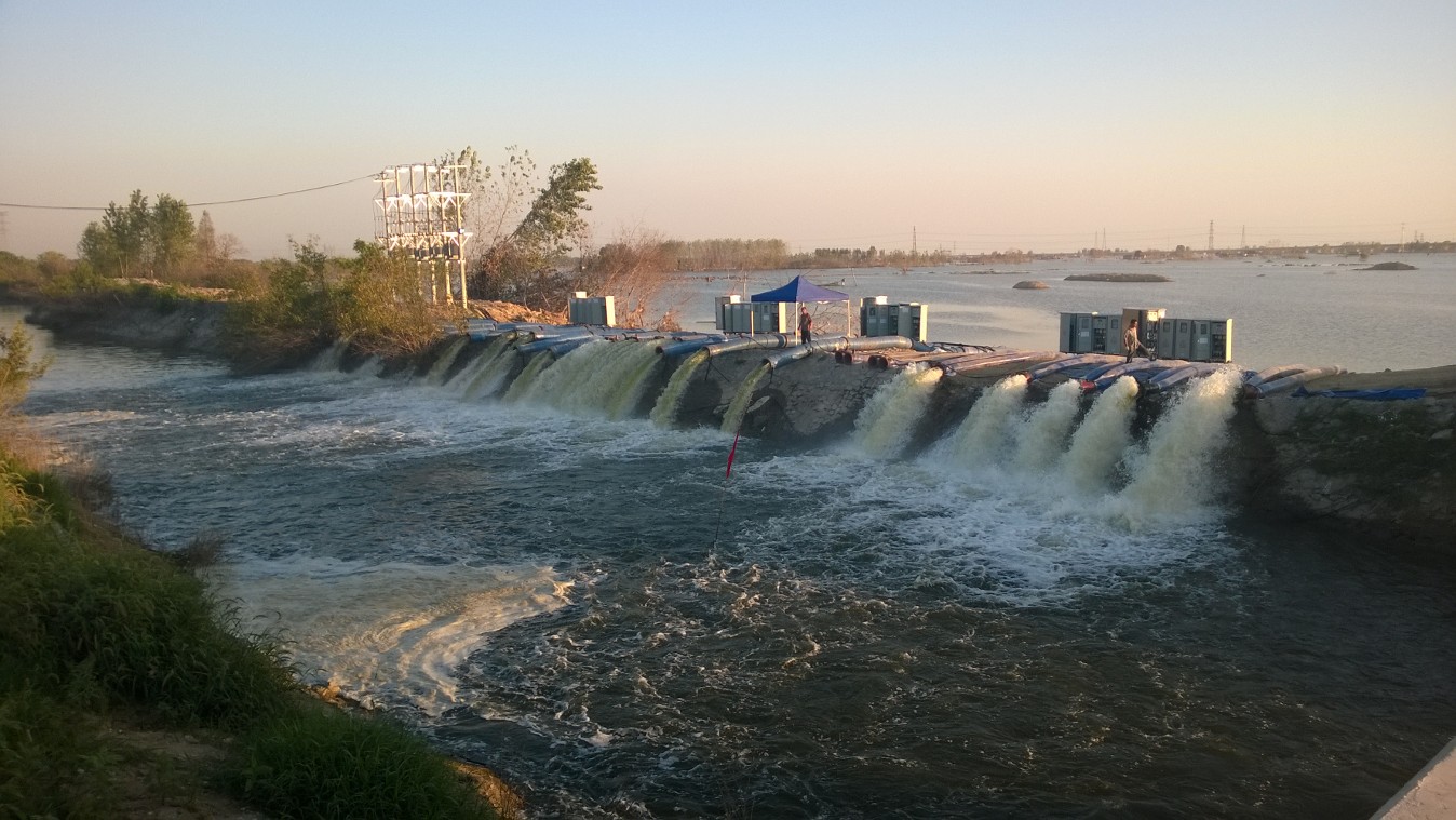 站和罗洪站四个临时排涝翻水站,总装机42台套潜水电泵,功率2375千瓦,流量21.2立方米/秒。该
